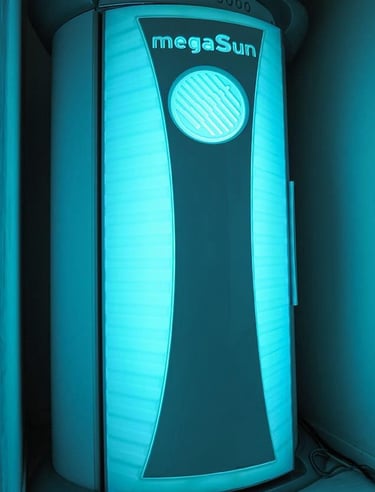 Nell'area solarium che comprende macchinari della Ergoline e della Megasun dal lettino al trifacciale, passando per la doccia solare e l'esafacciale, il cliente può trovare creme della Denysun e dell'Australian Gold pronte per l'uso.